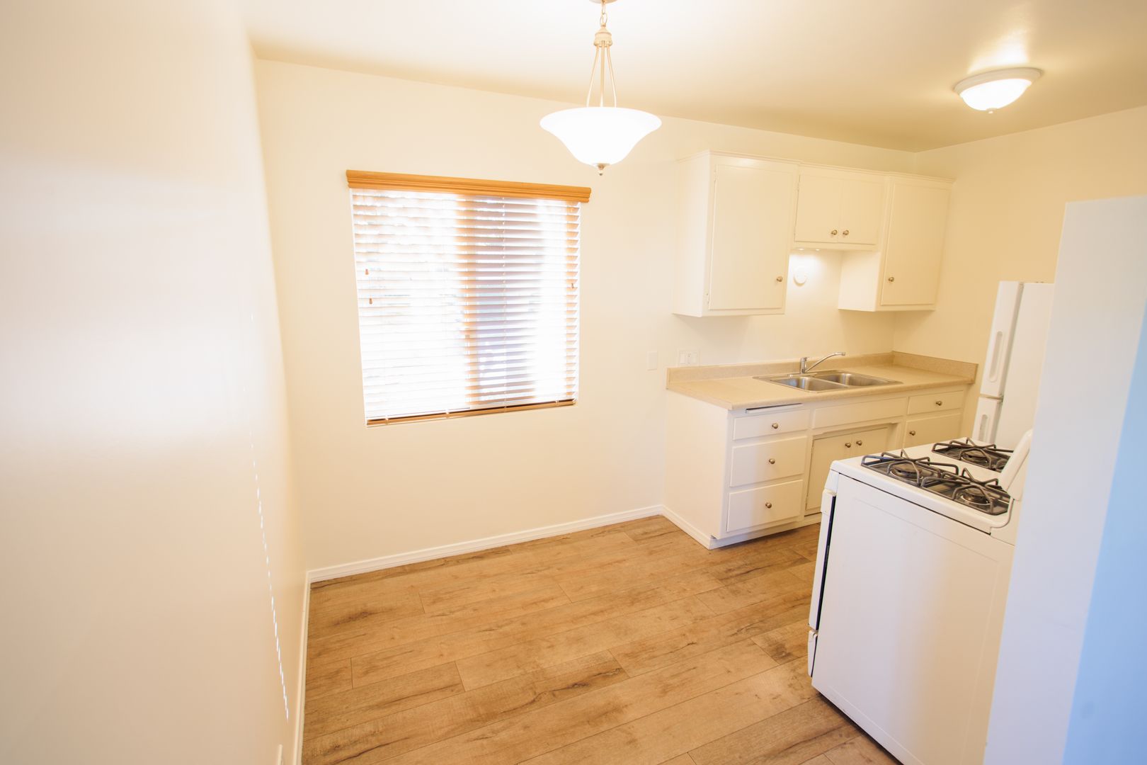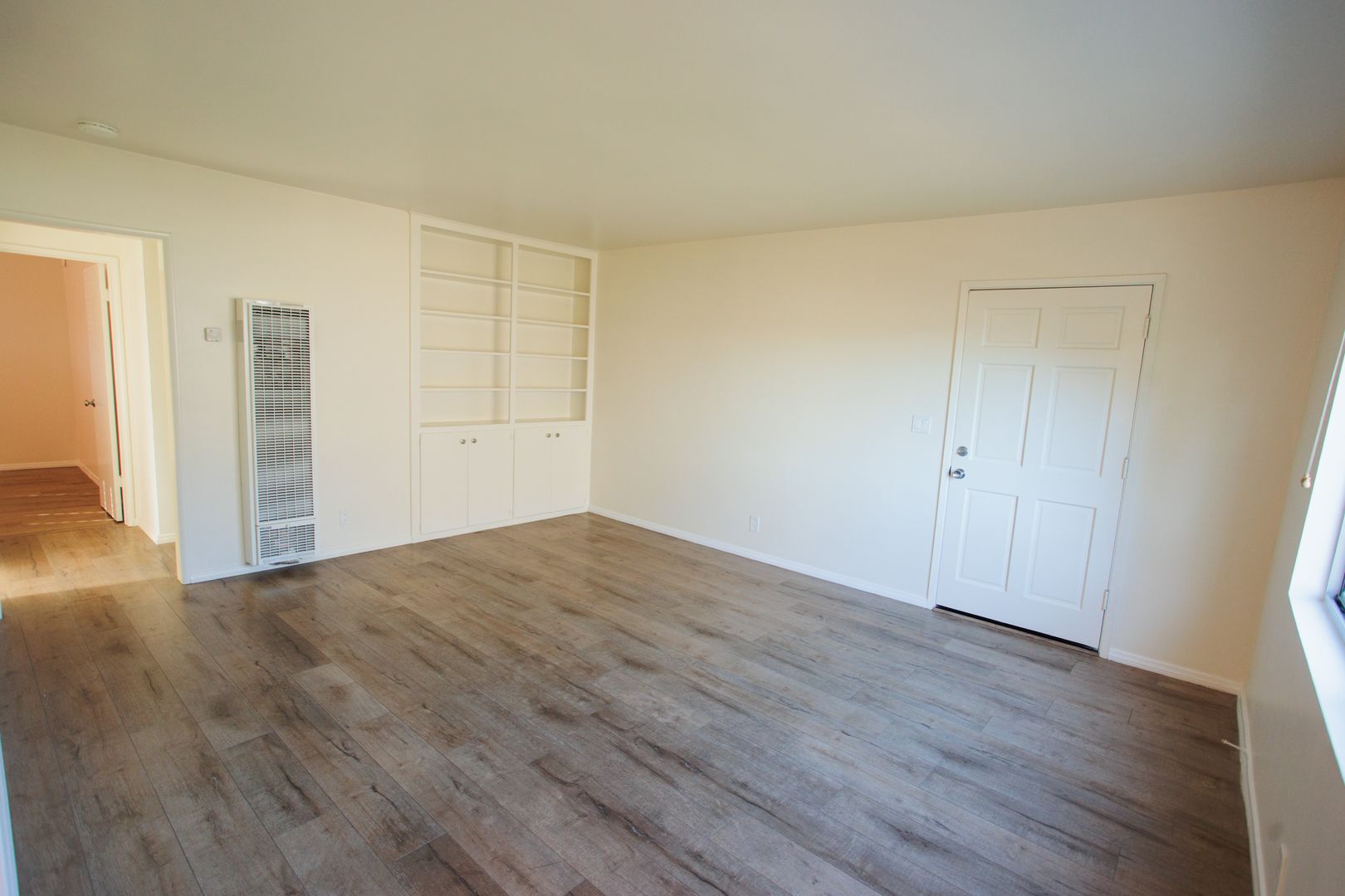 Remodeled and move-in ready, this beautiful apartment features a full-size kitchen with a gas stove, an open floor plan, wood floors, and built-in shelving and cabinets, new bathroom & lighting
